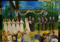 Hire me to paint or do caricatures live at weddings, birthday parties or any sort of family friendly get together that you desire some live entertainment. The paintings I create in that short time period are loose, sketchy, "impressionistic" renderings. But they will look complete and YOU GET TO KEEP THEM as wonderful mementos.